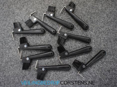 10 x Hoevenkrabber met Borstel en Magneet, Zwart. Gemakkelijk aan de stal of bij de poetsplaats op te hangen door middel van de magneet.
