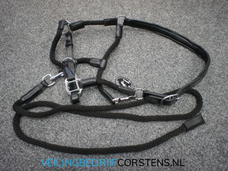 Kavel 601: 1 x Profi-Rider Luxe Leder Rope Halsterset, Incl Touw, Zwart, Full