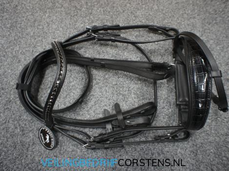 Kavel 843: 1 x Profi-Rider Luxe Hoofdstel, Croco Neusriem, Black Stone, Zwart, Full