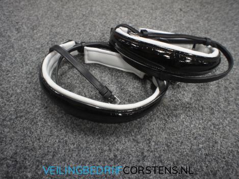 Kavel 1065: 2 x Losse Neusriem, Zwart Lak, Wit Ondl, Engels Leder, Full