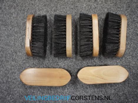 Kavel 515: 6 x Harde Borstel, Hout Handvat, Zwart