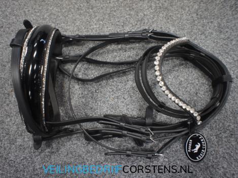 Kavel 563: 1 x Profi-Rider Luxe Hoofdstel, Big Stone, Anatomisch, Lak, Zwart, Full